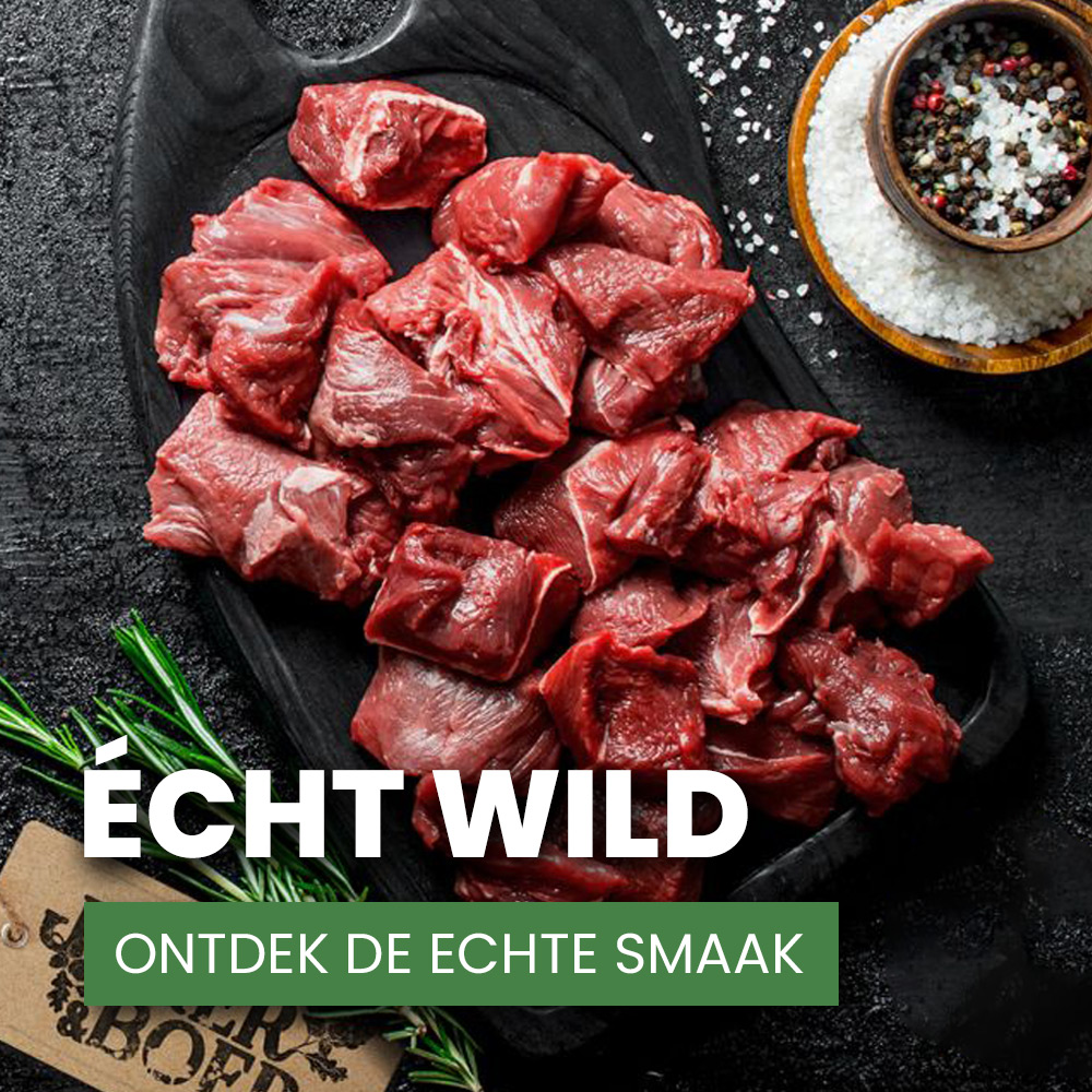 Bij Jager&Boer vind je een prachtig assortiment aan wild, rechtstreeks uit de natuur. Of je nu kiest voor wild zwijn, ree, edelhert, haas, gevogelte of konijn, al ons wild is van de hoogste kwaliteit. Bekijk ons speciaal samengestelde wildpakket of kies voor losse producten om je favoriete wildgerechten mee te bereiden. Heb je speciale wensen? Laat het ons weten, wij staan voor je klaar!